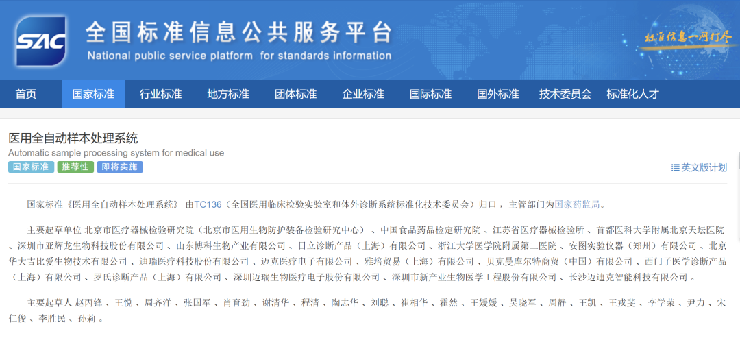 国家标准《医用全自动样本处理系统》正式发布!