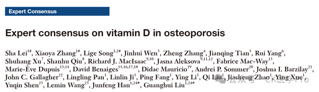 指南共识 | 2025骨质疏松症中维生素D的专家共识(中国共识 国际评论)
