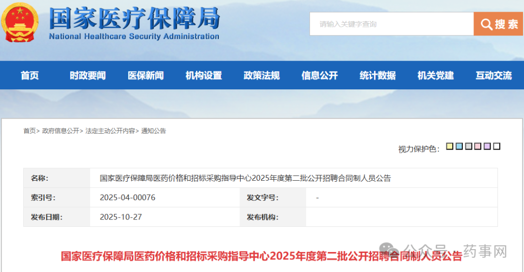 国家医保局第二批公开招聘合同制药师!